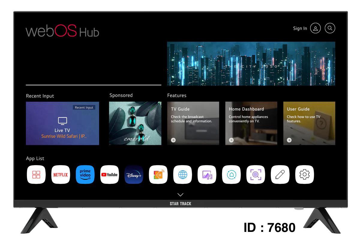 Marque : Star Track alimenté par WebOS, 4K UHD+ T2S2, Wifi, Taille : 65 pouces Application Netflix, YouTube, Prime Video, HDMI, USB avec modèle 2023