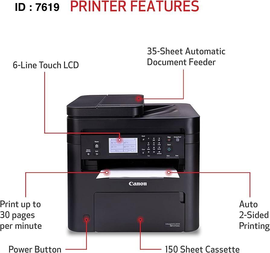 Marque : canon Fonction : impression, numérisation, copie, télécopié Technologie d'impression : Laser Vitesses d'impression rapides : imprimez jusqu'à 30 pages par minute et passez moins de temps à attendre avec un temps de première impression rapide d'environ 5,3 secondes. • Écran tactile réglable sur 6 lignes : travaillez avec un écran tactile réglable sur 6 lignes intuitif et facile à utiliser, que vous soyez assis à votre bureau ou debout. Caractéristiques : Écran tactile, recto verso automatique, écran d'affichage, écran d'affichage, recto verso automatique, certifié ENERGY STAR, EPEAT Argent, chargeur automatique de documents, prêt pour le réseau, chargeur automatique de documents, prêt pour le réseau, connexion sans fil, écran tactile