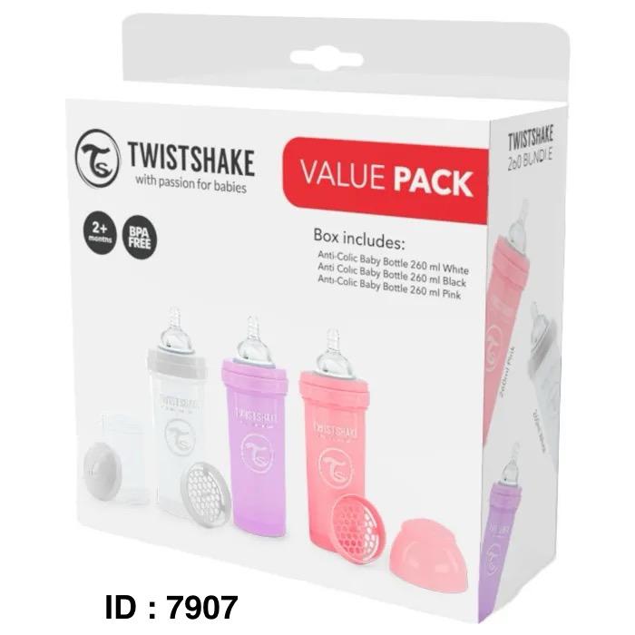 Marque : TWISTSHAKE Contient : Rose, Violet, Blanc +2m 260ml Lot de 3 Lavable au lave-vaisselle : Oui Biberon anti-colique en polypropylène Tétine anti-colique 100% silicone avec valve La bouteille a un goulot extra large, ce qui la rend facile à nettoyer. Le système unique TwistFlow réduit activement les coliques du nourrisson et assure un débit uniforme Biberon anti-colique de 330 ml