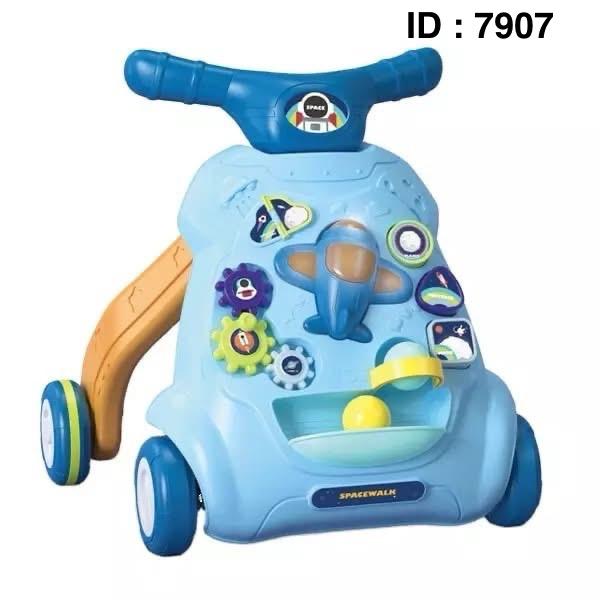 Âge : 18 mois et plus Couleur : bleue Thème : Space Avec musique et frein, jouet multifonction anti-basculement pour la marche debout, cadeau pour les enfants