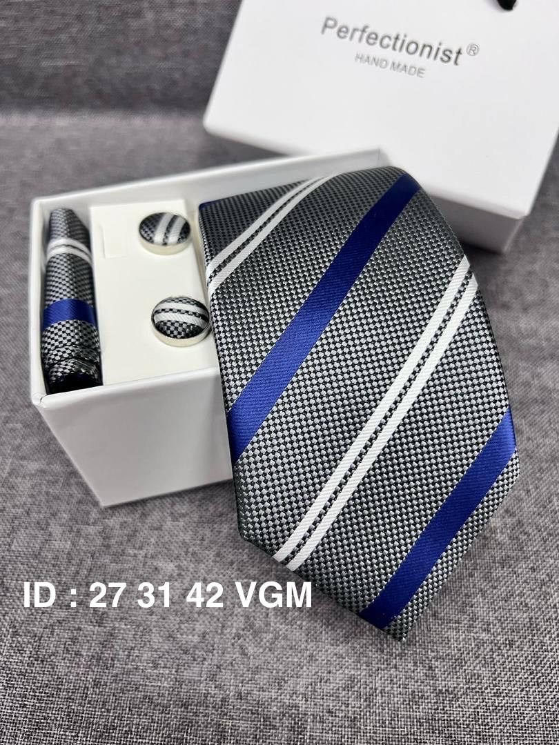 Une cravate gris bleu… à rayures épaisses, audacieuse et contemporaine. Disponible en plusieurs couleurs et styles