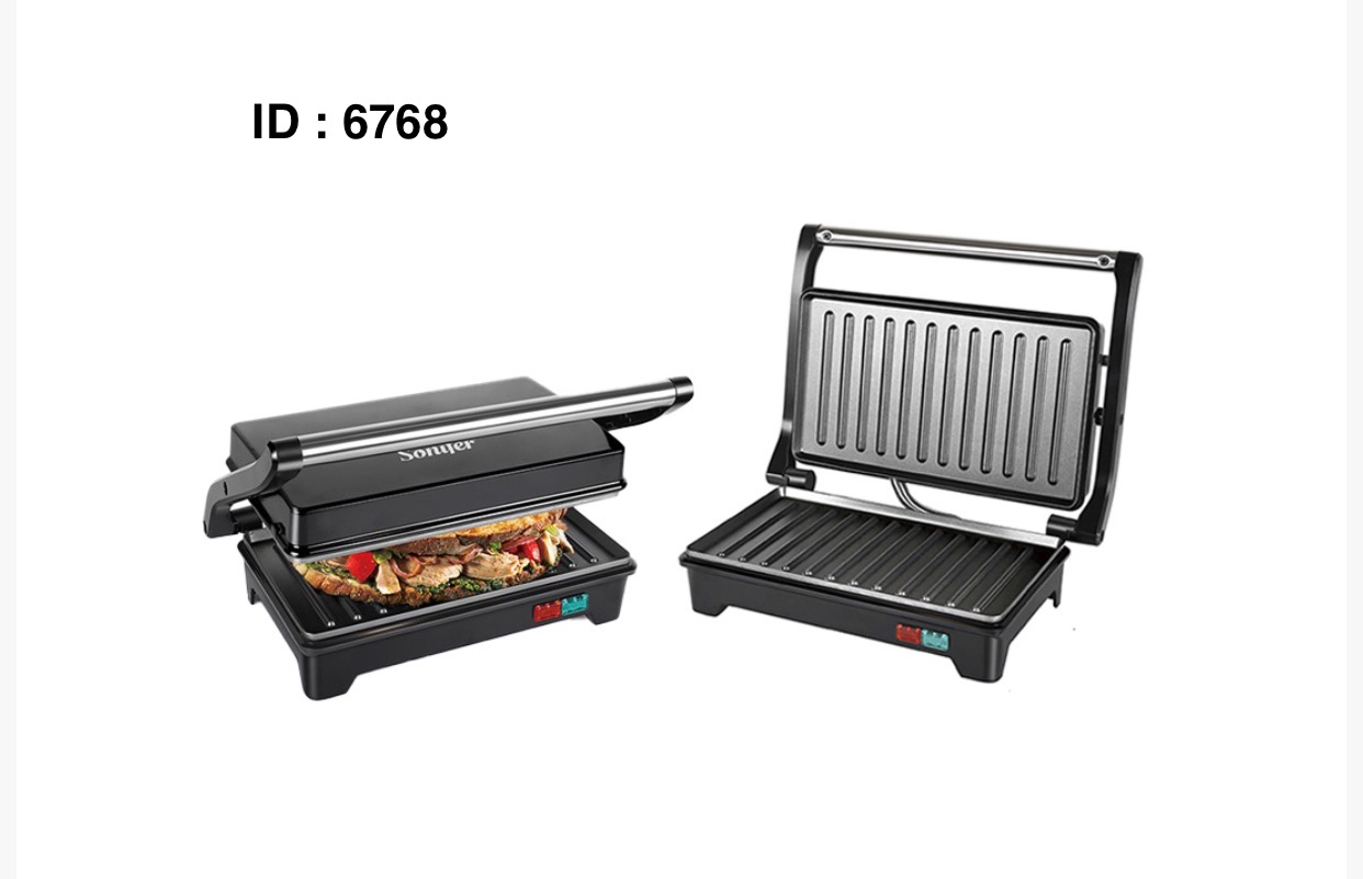 Marque : Sonifer C'est un gril électrique multifonctionnel d'une puissance de 750W. Il dispose d'un revêtement antiadhésif pour un nettoyage facile. La taille de la plaque de cuisson est de 23x13cm. Il est conçu pour une utilisation facile et saine, sans charbon ni fumée excessive.