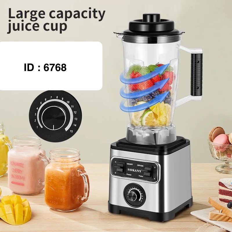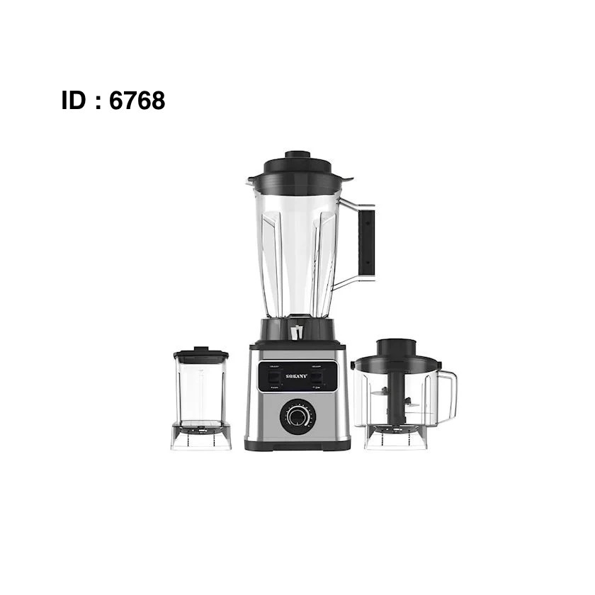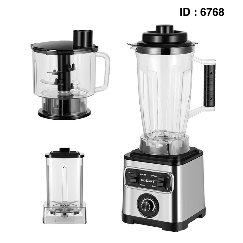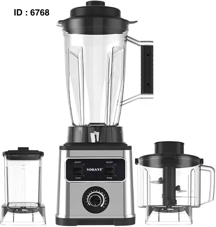 Marque : Sokany SK-3333 Fonctions : Il s'agit d'un mixeur multi-usages 3-en-1, avec des fonctions de mixage, de broyage et de pressage de jus. Puissance : Il est doté d'un moteur de 6600W Capacité : 3 Litres Disponible : 2.5 Litres Caractéristiques supplémentaires : Il possède un moteur en cuivre et est conçu pour une utilisation simple.