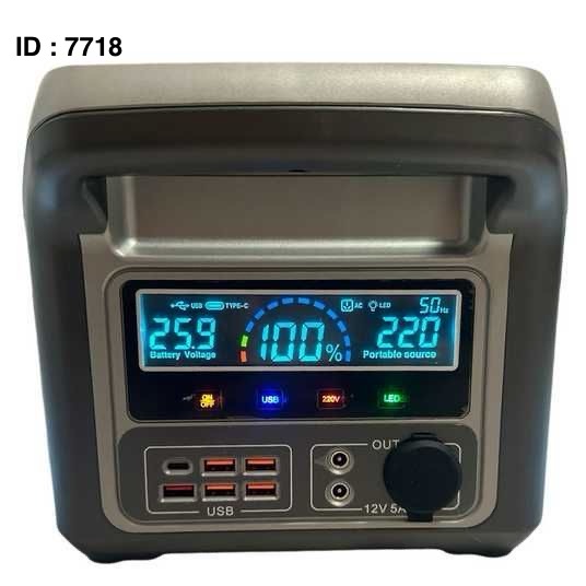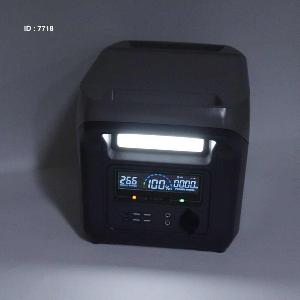 Également appelée centrale électrique portable ou générateur solaire portable Elle affiche un niveau de tension de batterie de 26,7 V et une charge de 100 %. Elle est équipée de plusieurs ports de sortie, notamment USB, 220V (prise secteur) et 12V. Elle est conçue pour fournir de l'énergie en déplacement, permettant de recharger divers appareils électroniques ou d'alimenter de petits appareils.