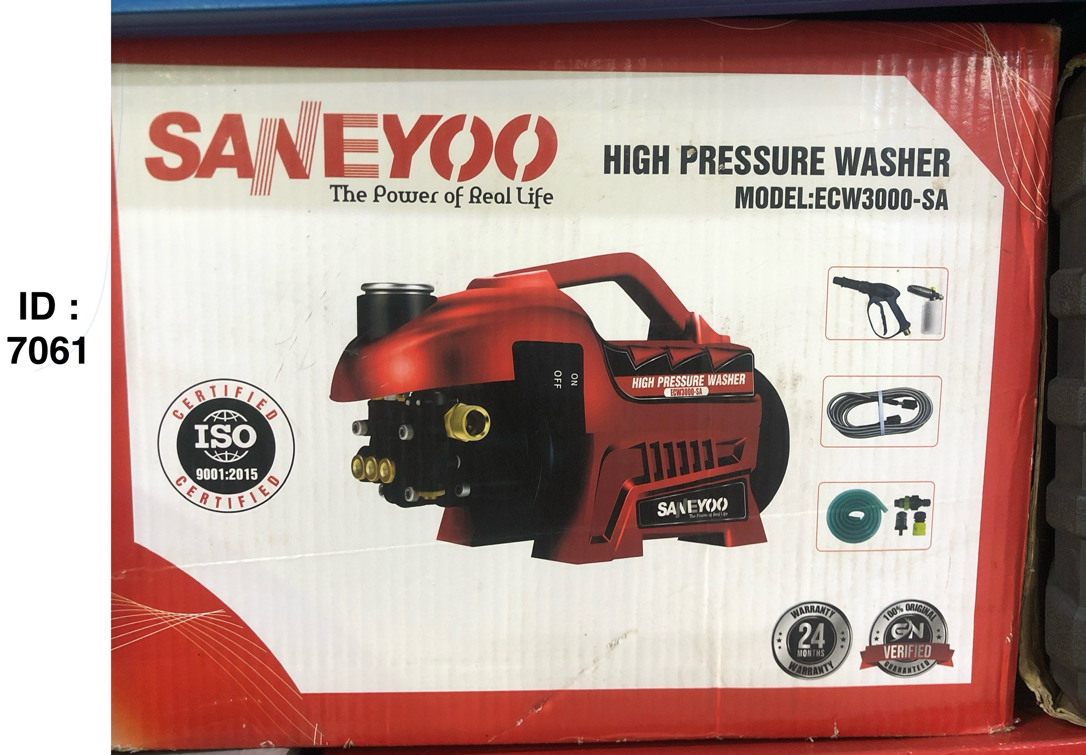 Nettoyeur haute pression électrique Marque : SANEYOO, modèle SA-3700 Applications : Ils sont adaptés à diverses tâches de nettoyage, des véhicules aux surfaces extérieures comme les terrasses et les clôtures. Les nettoyeurs haute pression comme le SA-3700 sont conçus pour offrir une pression élevée (le "3700" dans le modèle peut indiquer une pression de 3700 PSI, bien que cela doive être confirmé par les spécifications exactes du produit). Produits