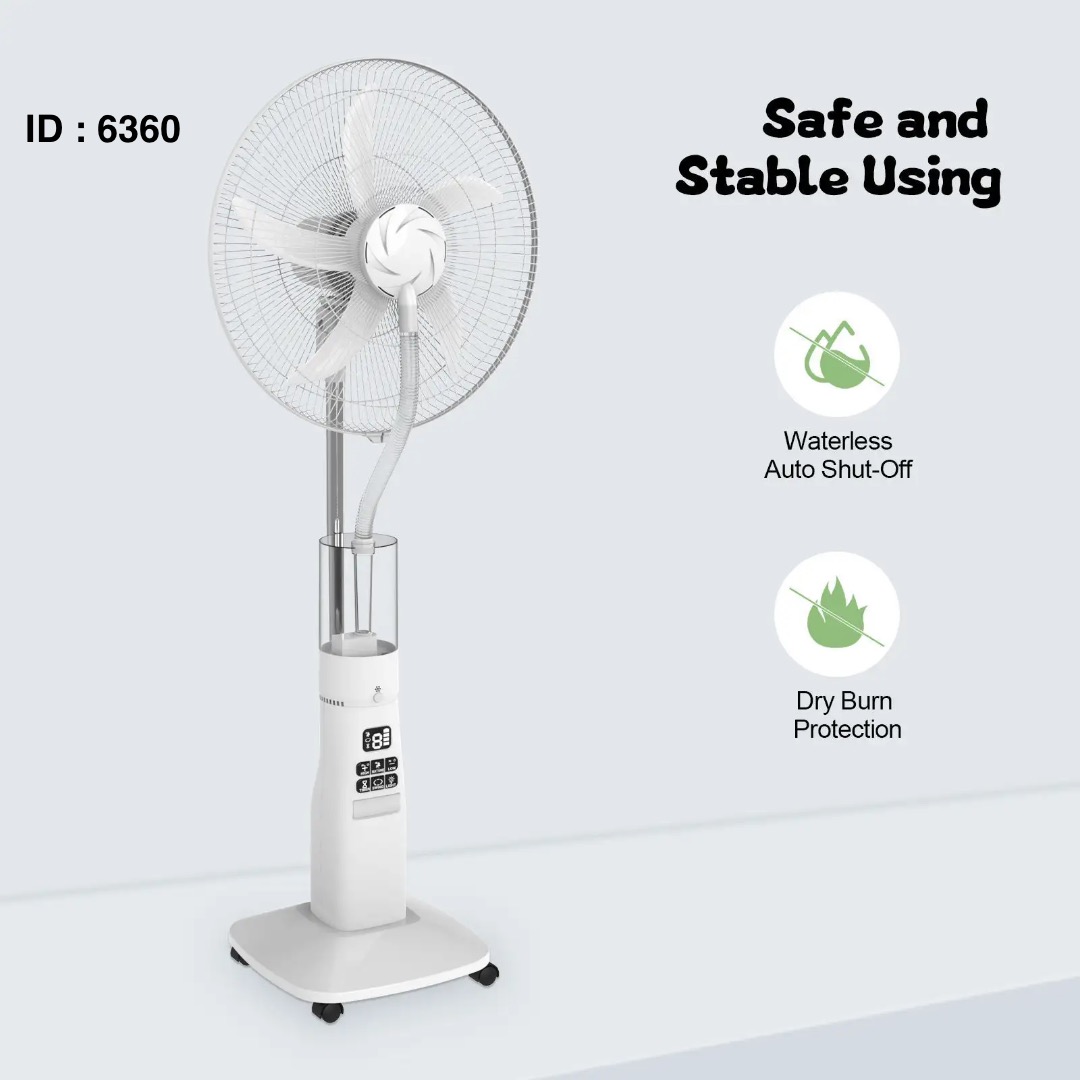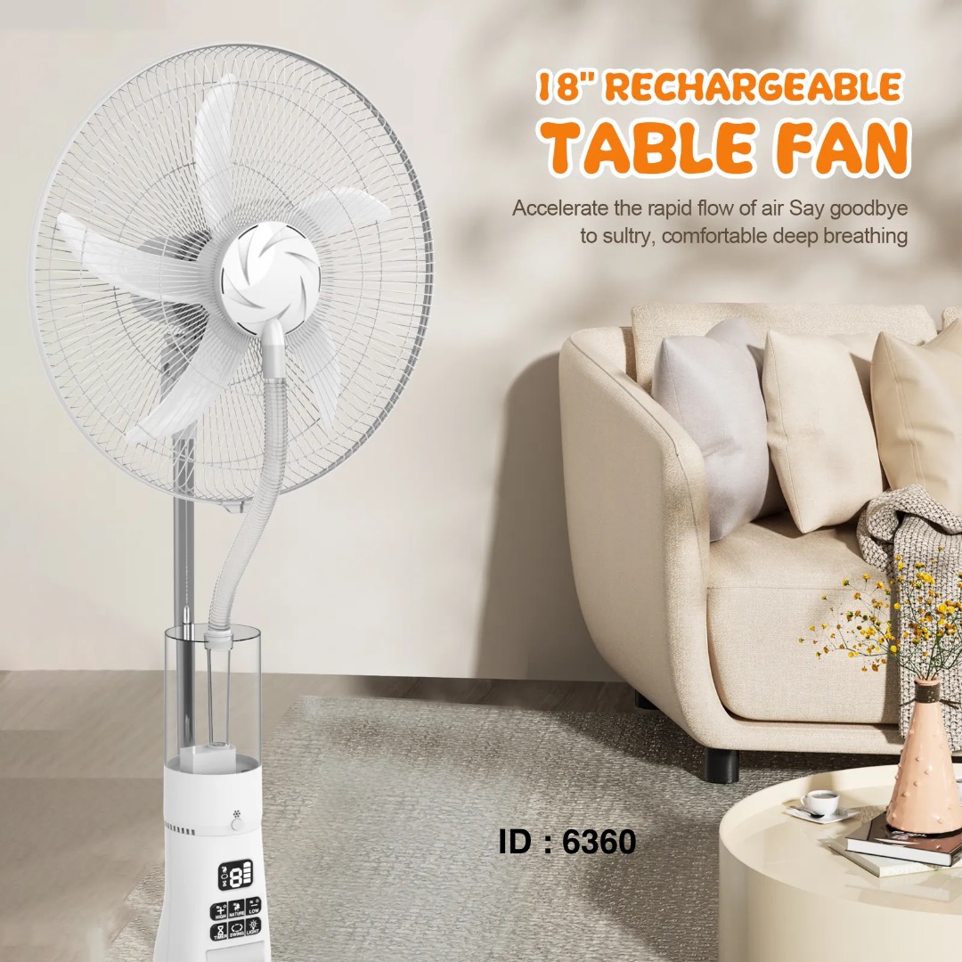 18 pouces à eaux brumisateurs Marque : Fizzen Télécommande : Contrôlez votre ventilateur à distance Temps de charge : 14 à 16 heures Autonomie : Ventilation : 4 à 24 heures Brumisation : 3 à 5 heures