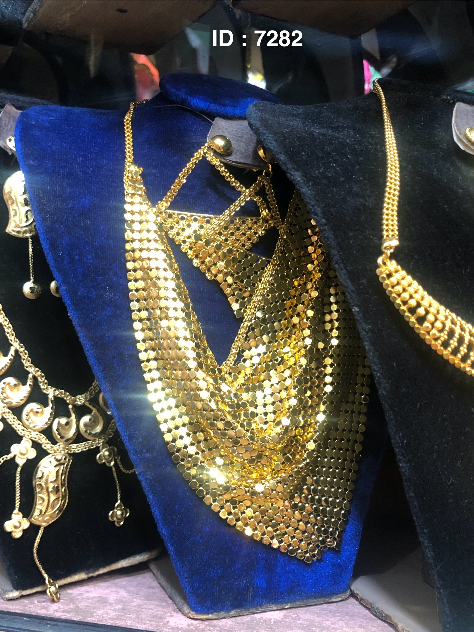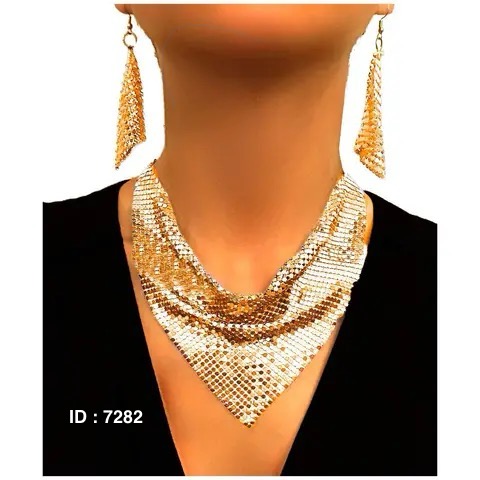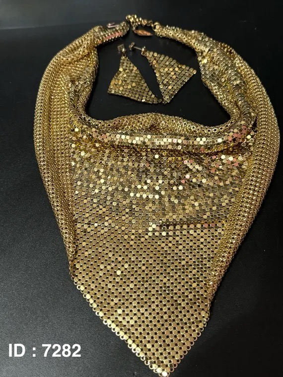 Collier ras du cou vintage en maille dorée signé Whiting & Davis et boucles d'oreilles