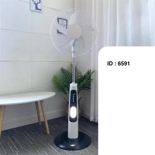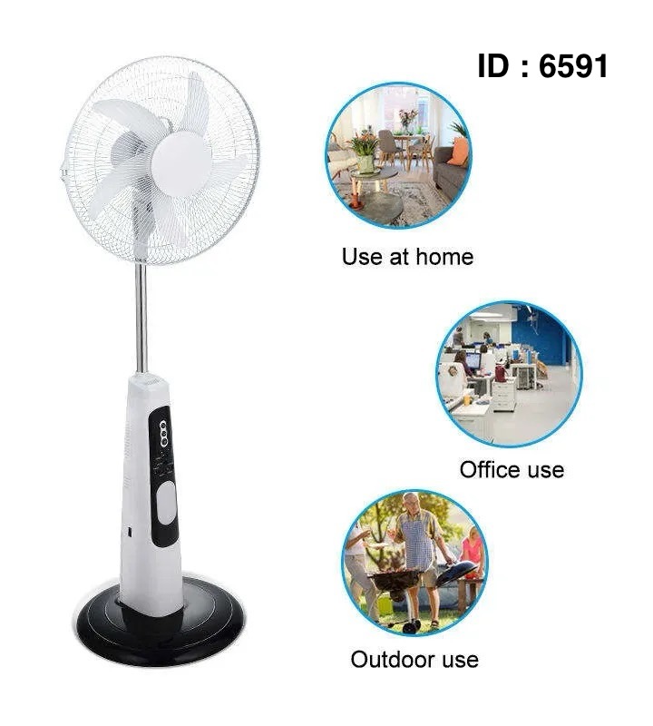 Marque : Fizzen Caractéristiques principales : Moteur en cuivre pur, contrôleur continu à 9 vitesses, protection de grille métallique, port USB 5V pour chargeur mobile, batterie multi-charge, et double sortie DC pour ampoules LED. Autonomie : Jusqu'à 8 heures sans électricité.