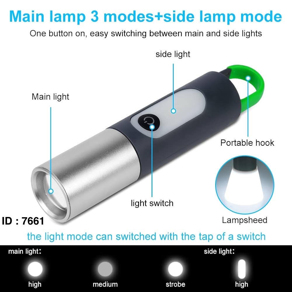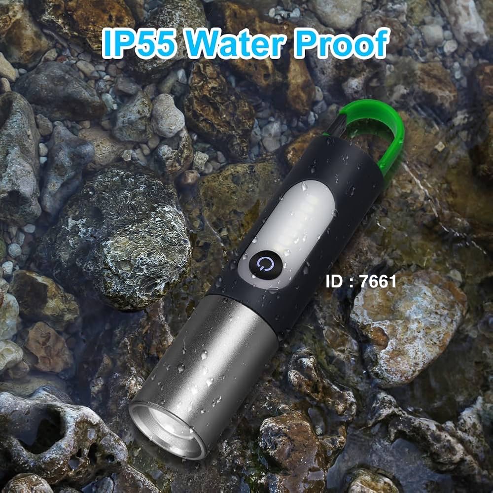 Marque : HEPU modèle HP-83 Lampe de poche longue portée, étanche, avec des modes d'éclairage multiples (fort, moyen, flash, lumière latérale). Utilisation : Conçue pour un usage quotidien, la randonnée en extérieur, le cyclisme de nuit et le camping. Recharge : Rechargeable via USB Type-C, avec une batterie intégrée.