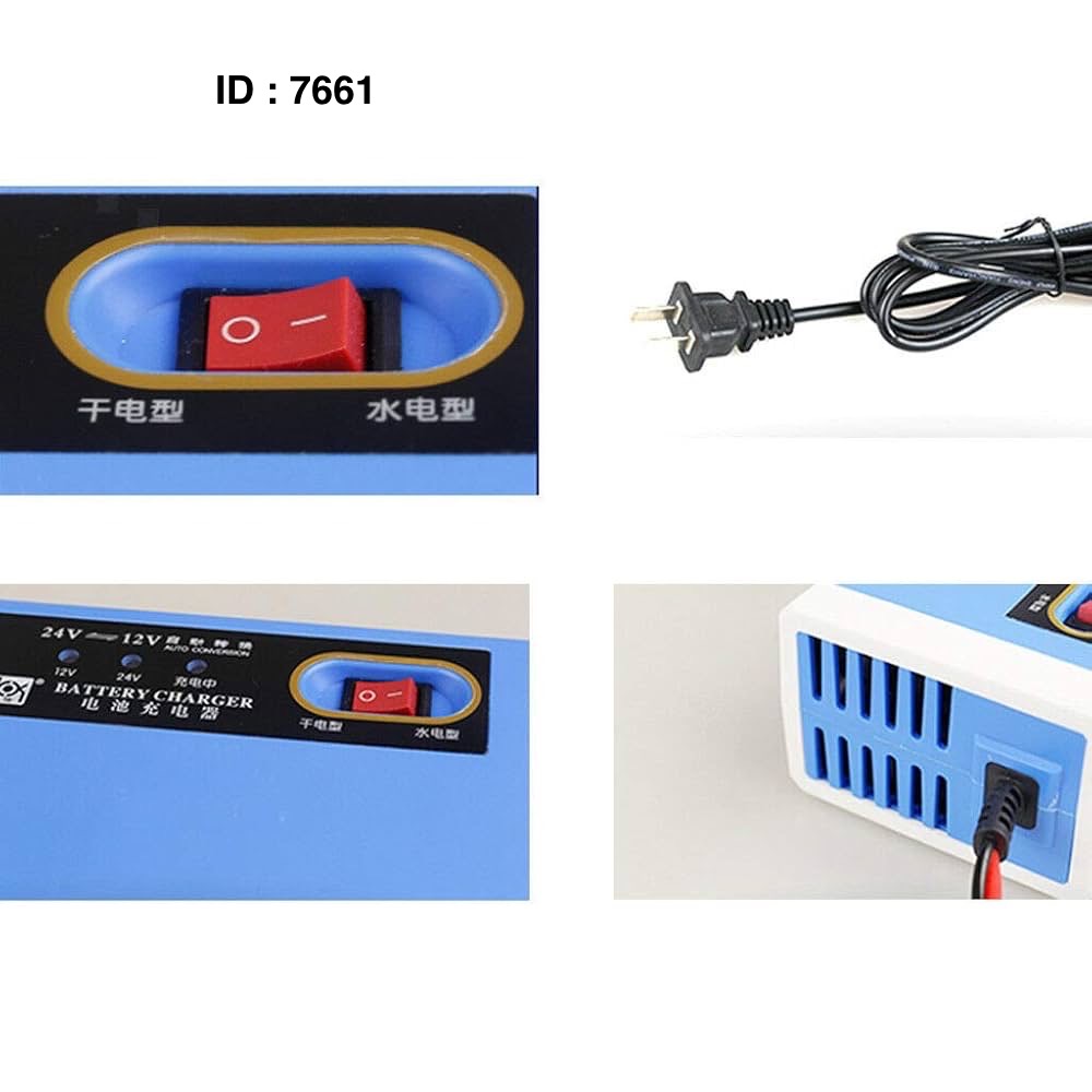 Compatibilité : Prend en charge les batteries 12V et 24V Fonctionnalités : Conversion automatique de la tension et modes de charge sélectionnables (Normal/Strong) Utilisation : Permet de recharger les batteries de véhicules.
