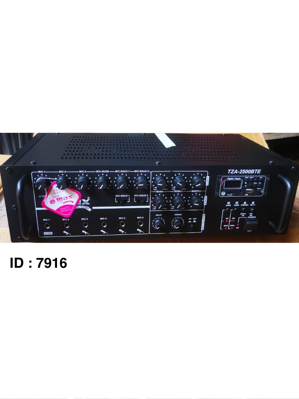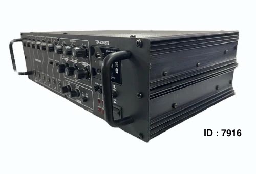 Modele : TZA 2500 BTE Caractéristiques de l'amplificateur TZA 2500 BTE : Impédance : 8 ohms. Niveau de bruit (SNR) : 60 dB. Connectivité : AUX. Utilisation : Conçu pour les DJ. Couleur : Noir. Poids : 17 kg. Dimensions : W500 x H140 x D340 mm. Puissance de sortie : 110W + 110W RMS.