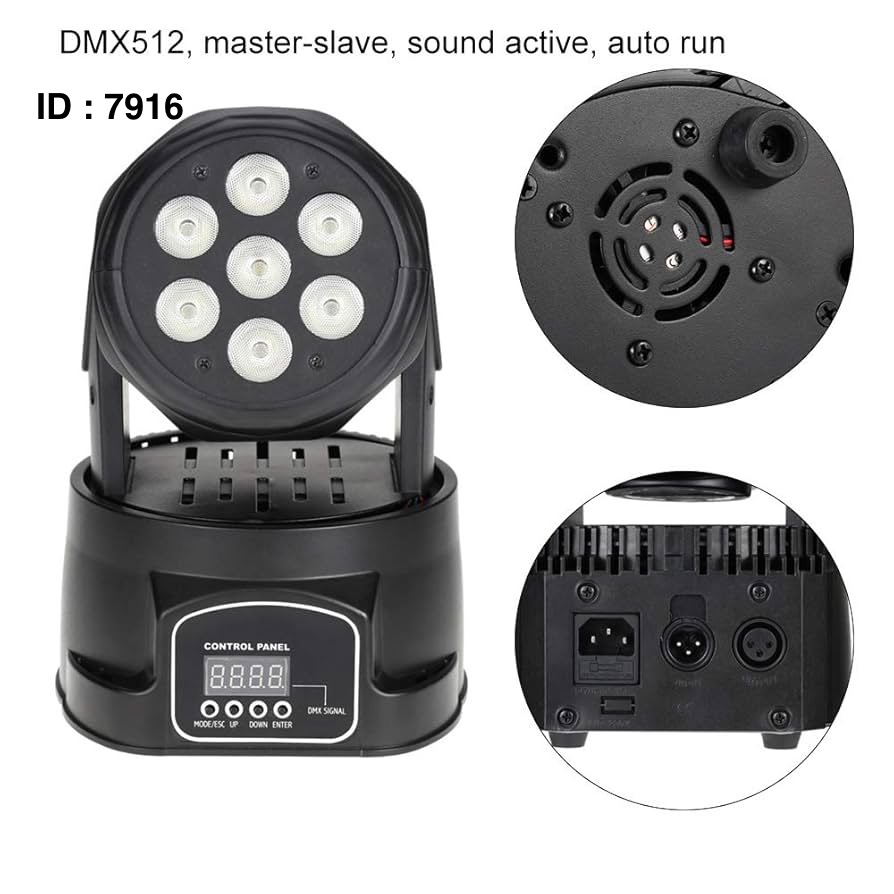 tirera tout et créera une lumière de lavage colorée. Quatre modes : Auto / Activation sonore / DMX 512 / Éclairage de scène professionnel à LED DMX512 9/14 canaux. Affichage LED pour une utilisation simplifiée. Activation sonore : Très sensible Conception compacte, sûre et fiable. Moteurs pas à pas de qualité pour des mouvements rapides, fluides et précis. Meilleures performances de refroidissement : avec un ventilateur intégré et un revêtement en alliage d'aluminium, il peut être refroidi efficacement. Panoramique à 540° et inclinaison à 270°. Correction automatique des erreurs. Gradation électronique progressive de 0 à 100 % au sol (en DMX) ou sur support mural (accessoires de montage disponibles). Adapté à une utilisation en intérieur.