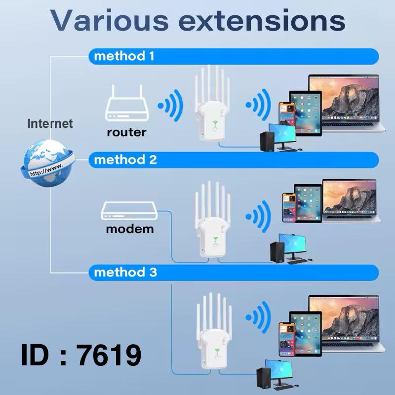 Double bande 6 antennes Taux de transfert de données : 1 200 Mbps, Fréquence : 2,4 GHz/5 GHz Amplificateur de signal à, routeur WPS pour la maison et le dortoir, Wi-Fi sans fil