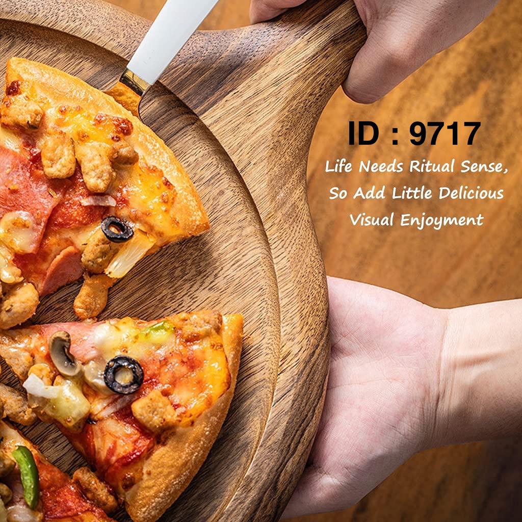 Matériaux : Les plateaux sont en bois avec une surface intérieure qui semble être en marbre ou un matériau similaire à motif marbré. Utilisation : Ils sont destinés à servir des pizzas ou d'autres plats similaires. Tailles : L'ensemble comprend plusieurs plateaux de tailles différentes, emboîtables les uns dans les autres.