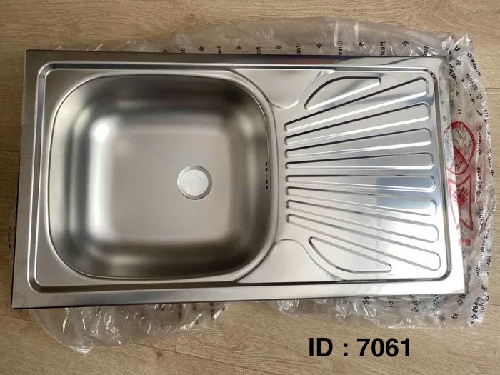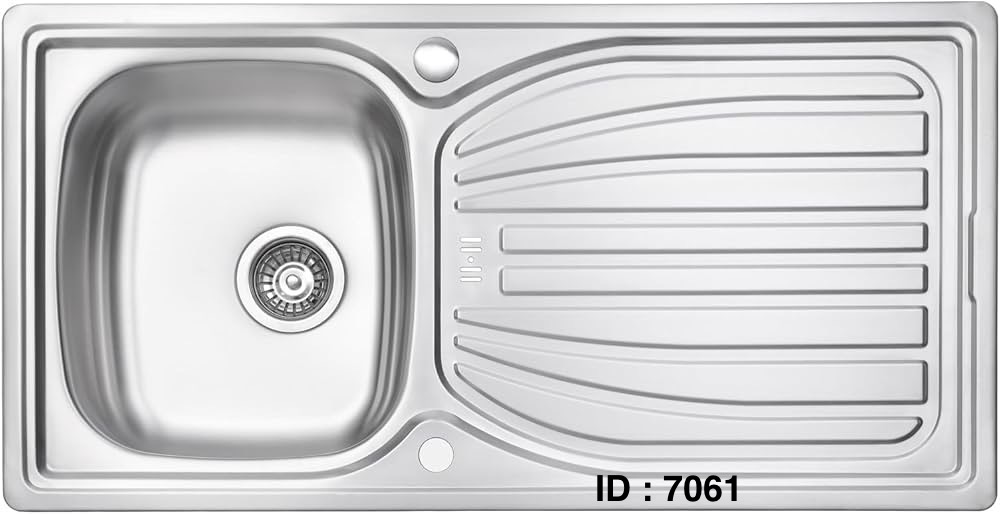 Évier de cuisine en acier inoxydable. Il s'agit d'un évier en acier inoxydable avec un seul bac et un égouttoir intégré sur le côté droit. Il est doté d'un trou pré-percé pour le robinet, ce qui facilite l'installation.