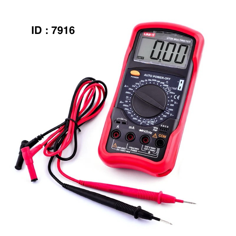 Il mesure la tension AC/DC, le courant DC, la résistance, la capacité, la fréquence et la température (modèles UT53/55/56). Il inclut également des fonctions de maintien des données, de test de continuité, de diode/transistor et d'arrêt automatique. Affichage : Il est équipé d'un écran LCD à 3 1/2 chiffres (1999). Sécurité : L'appareil est certifié CE, garantissant des mesures fiables et minimisant les risques électriques.